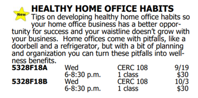 This September and October I will be offering a class called ?Healthy Home Office Habits? at Lake Orion Community Education. The classes will be held on Wednesday September 19, 2018 and Wednesday, October 3, 2018.