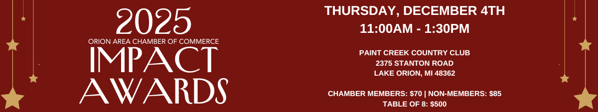 If you are interested in being a sponsor at the event, please contact Joyce Donaldson at joyce@orionareachamber.com