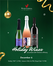 Ring in the season on Dec. 6 with a special Verterra Winery tasting and a visit from co-owner Paul Hamelin at Michigan by the Bottle